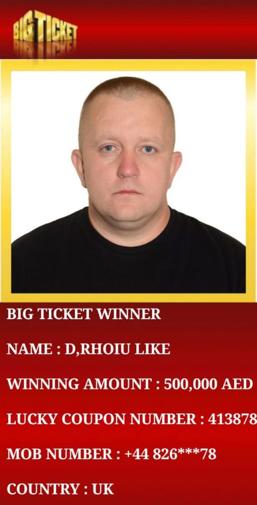 "Lucky Draw Competition third prize winning amount 30,80,500aed country india mobile number is +91946****456 thank you big ticket"